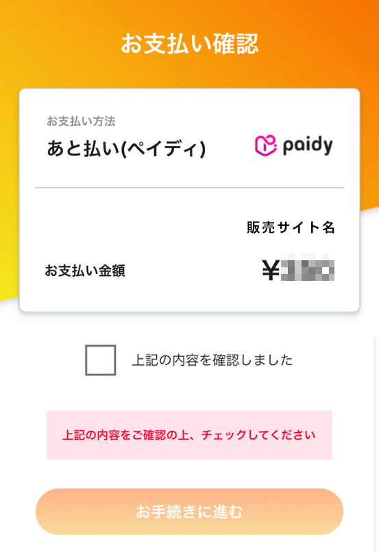 ▼ご注文からあと払い(ペイディ)お手続き完了まで