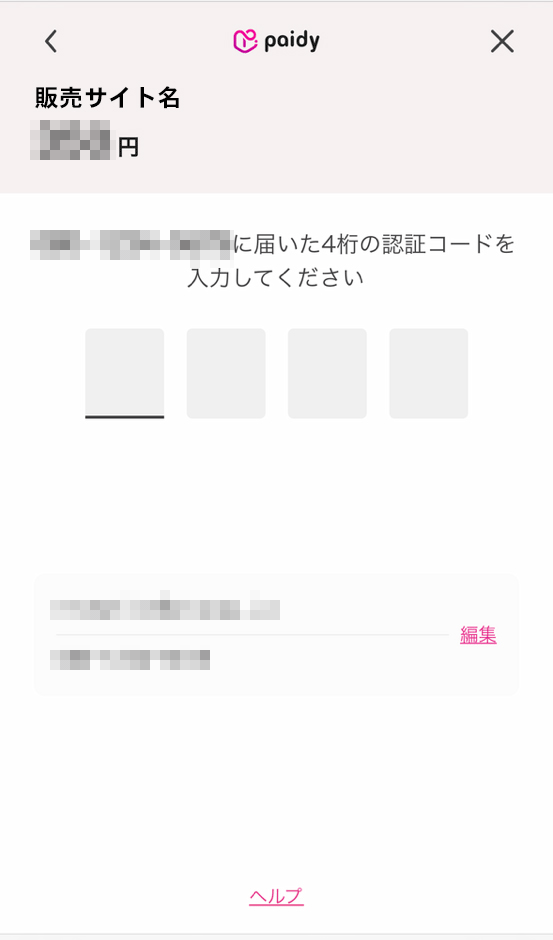 6. 携帯電話番号宛てにSMS(ショートメッセージ)にて4桁の認証コードが届きましたら、ご入力ください。